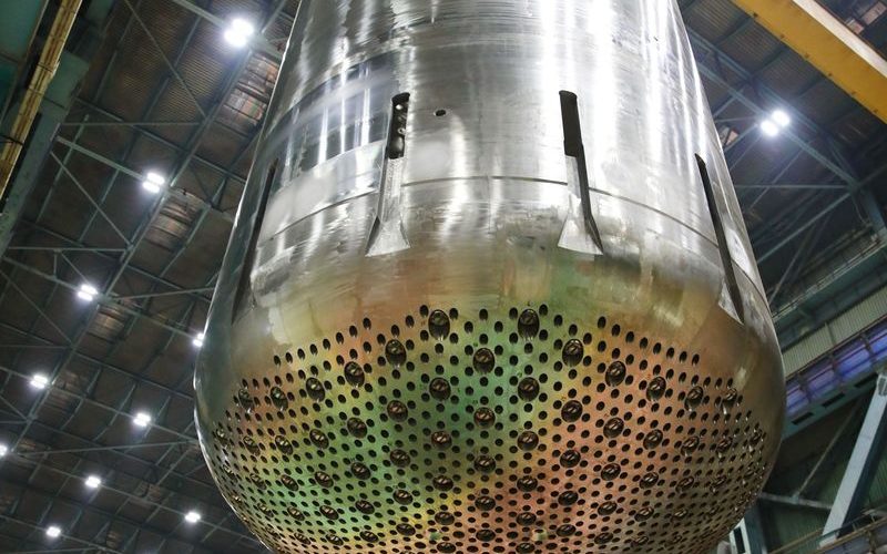 На этапе сборки корпус реактора устанавливается вертикально в специально подготовленный стенд-кессон — уникальную технологическую площадку, предназначенную для точных измерений и контроля. После этого начинается сложный процесс сборки, в ходе которого внутрь корпуса, похожего на матрёшку, аккуратно опускается внутренняя шахта длиной 12 метров. Внутри этой шахты будут размещены ключевые компоненты, такие как ядерное топливо, выгородка и защитные трубопроводы. Всего в сборке участвуют более 100 элементов, каждый из которых должен точно соответствовать установленным стандартам.
